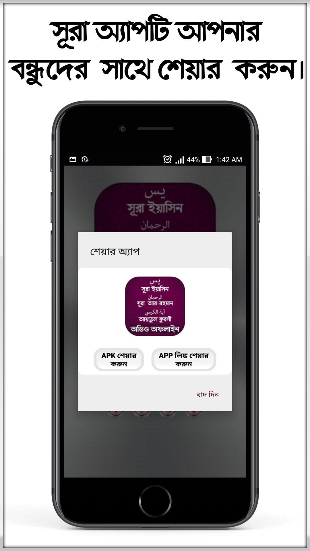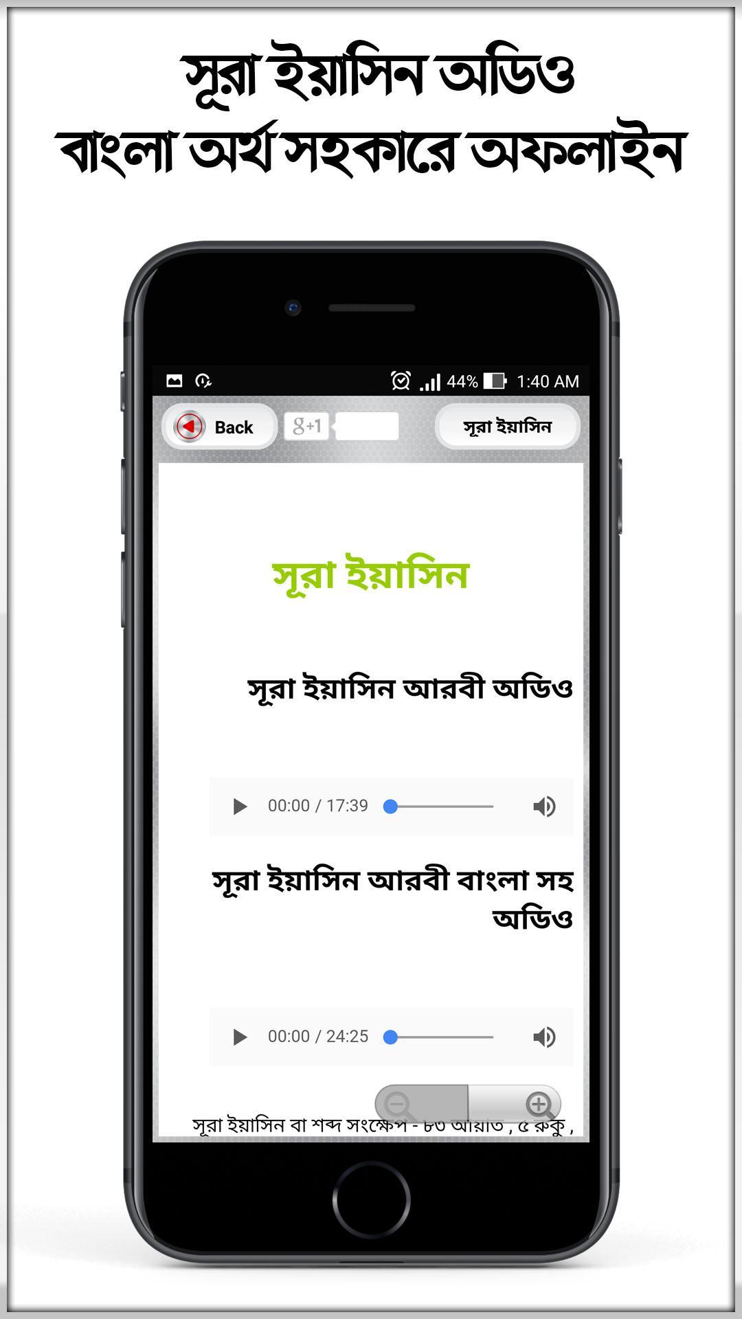 surah yaseen is the heart of Al Quran. surah yaseen bangla translation is included in this application. surah yaseen audio recitation is so much heart touching. Surah Yaseen application should keep in our mobile. surah yaseen mp3 is offline now. surah yaseen mp3 offline uses is very easy. surah yaseen mp3 audio offline features is the most important part of this. surah yaseen audio bangla is known to us. Surah Yaseen + Audio (Offline) makes our users feel so good because of surah yasin, ar rohman, aytul
