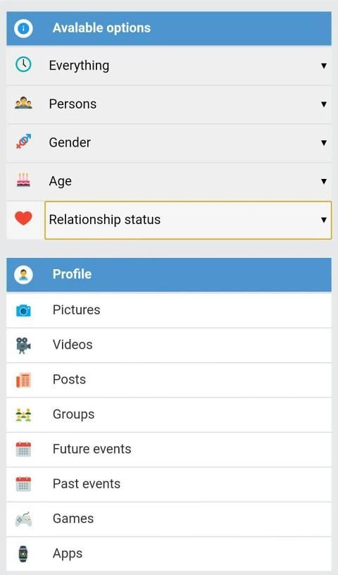 Please be aware that results depend on privacy settings: if information is set to 'friends only' it will only show up for Facebook friends.