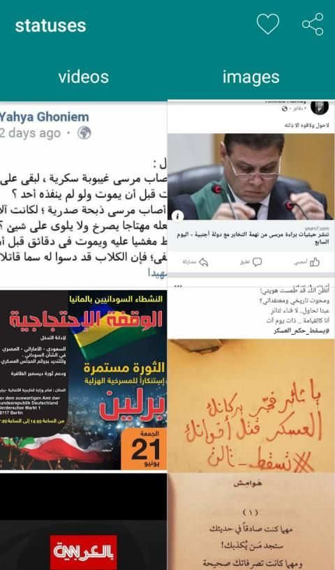 - الان افتح برنامج نزل و بس ل ( تنزيل حالات الواتساب ) وسيظهر كل الحالات التي شاهدتها في الواتس وقم بعدها بتنزيلها (فيديو أو صور)