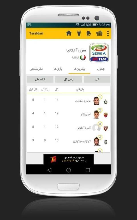 दिखा रहा है टीमों, खिलाड़ियों, टेबल का खेल, वीडियो, समाचार और चुनाव तालिका सहित प्रत्येक लीग के लिए जानकारी