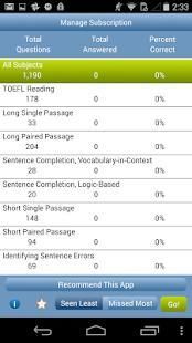TOEFL TestBank tracks when you get a question incorrect. Focus on questions that you've missed most often.