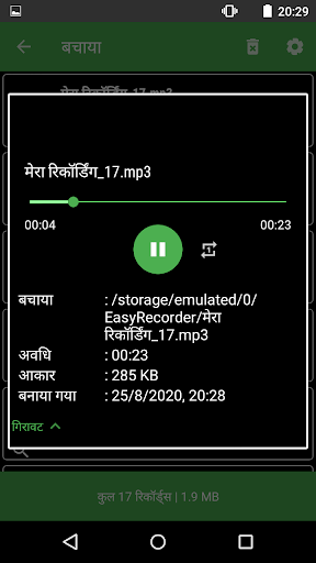 • ऑडियो रिकॉर्ड फ़ाइल को रोकें, रोकें, फिर से शुरू करें।