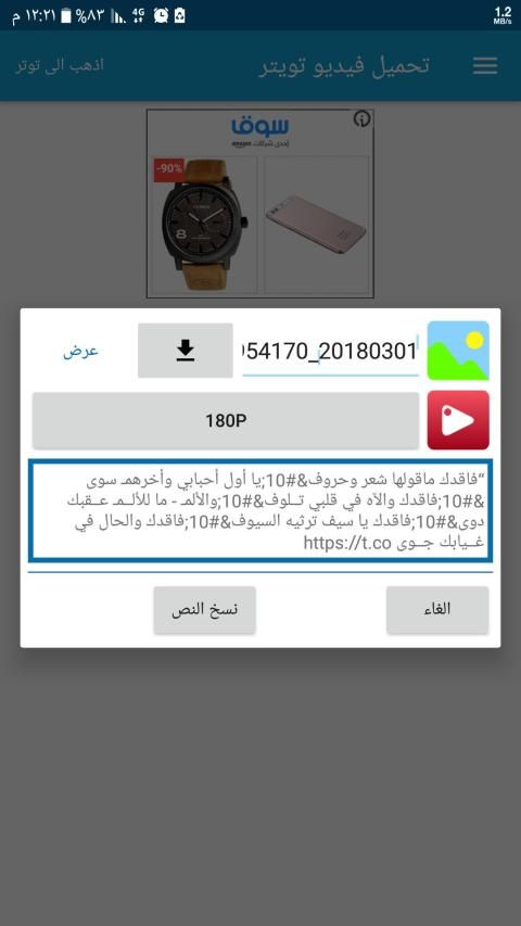 تحميل وحفظ مقاطع فيديو تويتر بسرعة فائقة اعلى جودة قم بنسخ التغريدة والصقها في التطبيق سيـأتيك اختيار دقة الفيديو اختر المناسب