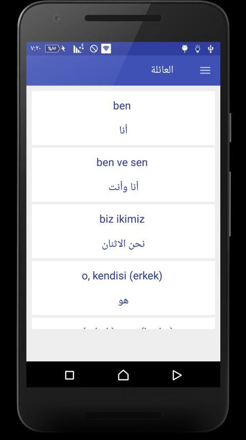 عرض الجمل و الكلمات بالتركية ومعناها بالعربية