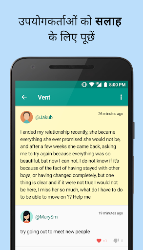 क्या आपको कोई समस्या, कठिनाई, कुछ चिंता हो रही है, आपको वेंट करने की आवश्यकता है या क्या आप सलाह चाहते हैं? यह आपका ऐप है!