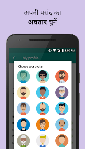 कंधे के दोस्त पर हम आपके अवतार को निजीकृत करने के लिए एक शक्तिशाली उपकरण प्रदान करते हैं, जहां आप गुमनामी की चिंता किए बिना खुद का प्रतिनिधित्व बना सकते हैं, इसलिए आप अपने जीवन के लिए नए दोस्त बना सकते हैं।