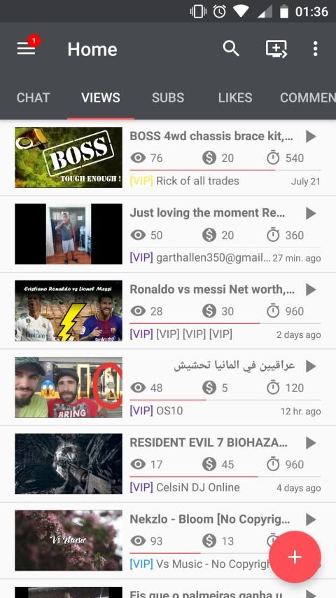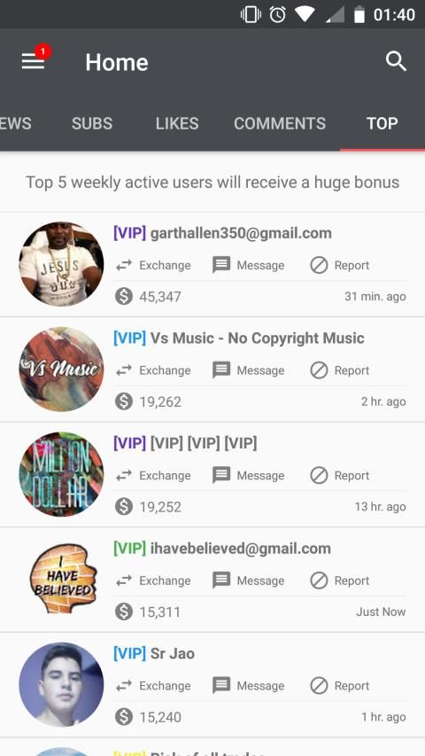 - Any exchange that created by an VIP user will be pinned on top then many users will help you boost your video views/video likes/video comments/channel subscriptions faster. The priority to pin an exchange on top depends on the total coins you bought.