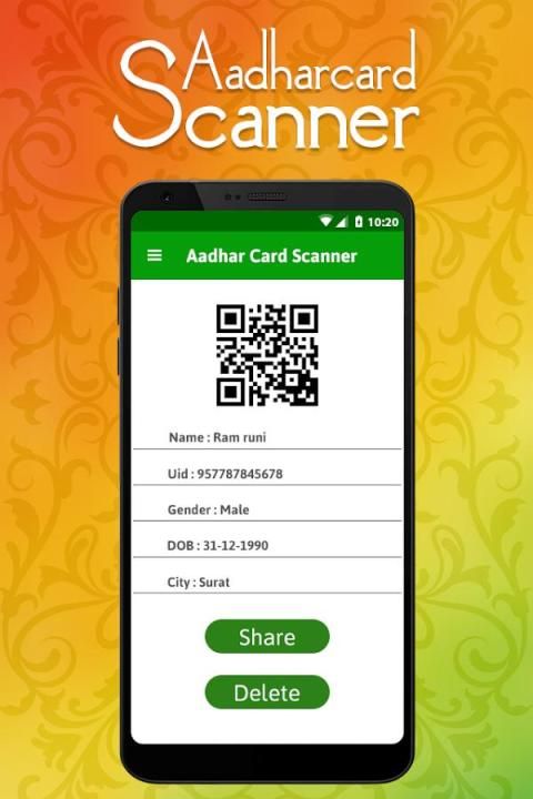 * डाउनलोड करें और हमारे एप्लिकेशन खोलें और किसी भी आधार कार्ड QR कोड स्कैन करें।