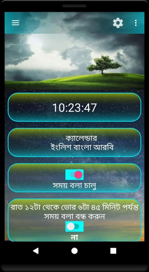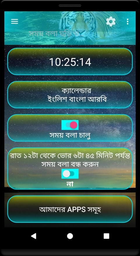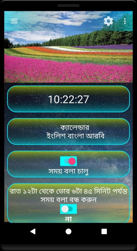 সময় বলা ঘড়ি - অ্যাপ টিতে সময় বলা ছাড়া ও রয়েছে Bangla English Arabic ক্যালেন্ডার 2019 ,