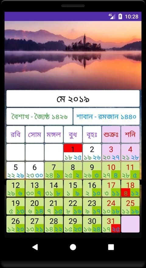 इस ऐप में 2019 कैलेंडर (अंग्रेजी + बांग्ला + अरबी कैलेंडर) भी शामिल है