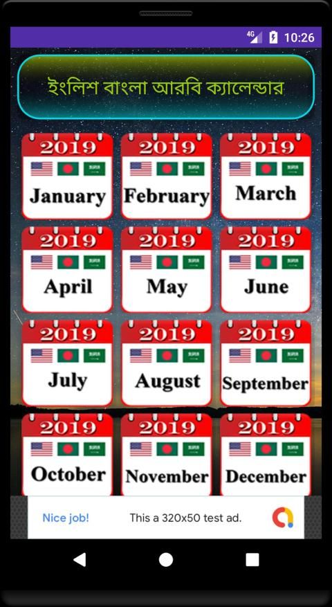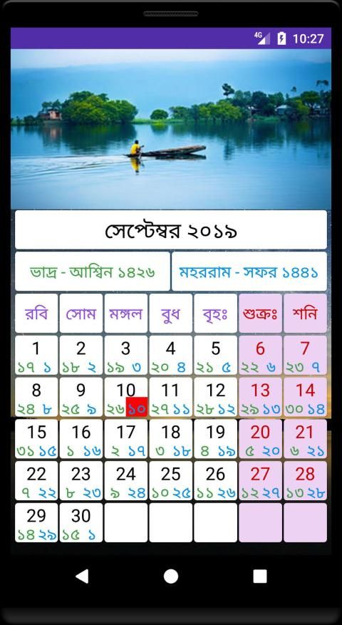 This app also contains a 2019 calendar (English+Bangla+Arabic calendar)