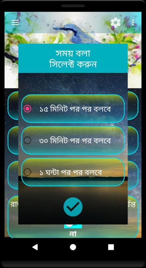 প্রতি ১৫ মিনিট পর পর সময় বলবে