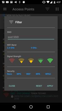 - उपलब्ध फ़िल्टर: वाईफाई बैंड, सिग्नल शक्ति, सुरक्षा और एसएसआईडी