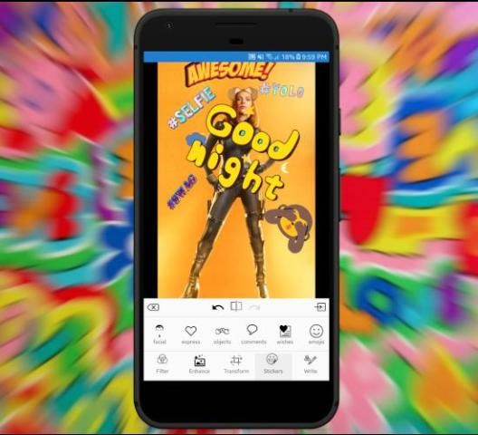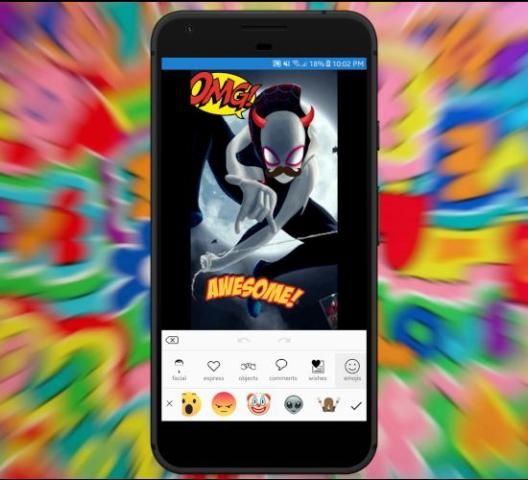 नए अद्भुत स्टिकर लागू करें - चेहरे, एक्सप्रेस, ऑब्जेक्ट, टिप्पणी, शुभकामनाएं, इमोटिकॉन्स, हैशटैग।