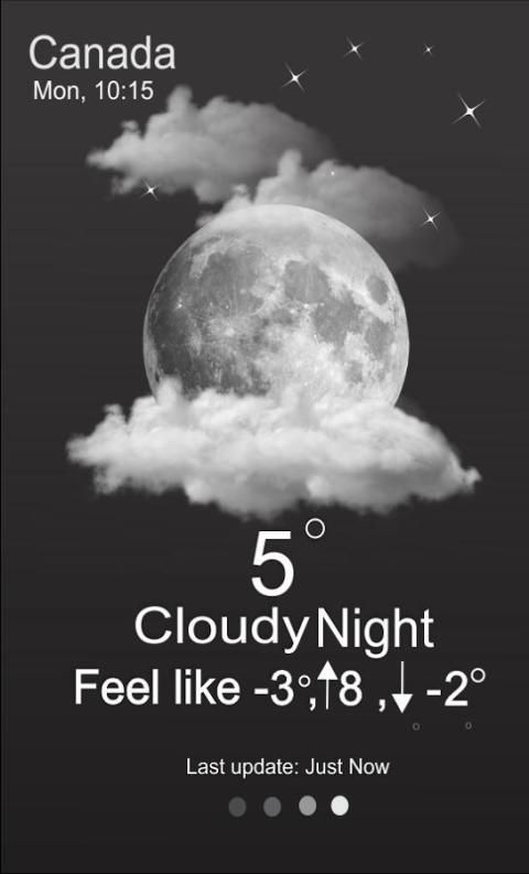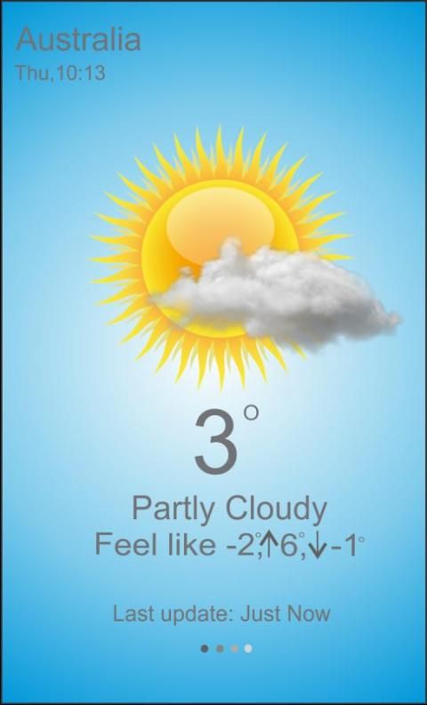 जलवायु राज्य शान से एनिमेटेड है इतना है कि आप लगभग यह अनुभव कर सकते हैं देख कैसे मौसम alive.With बस एक क्लिक से आप अपने वर्तमान स्थान पर मौसम की स्थिति और अपनी स्थिति के बार में temerature प्राप्त आता है।