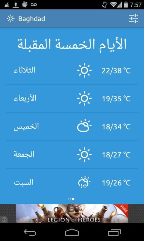 आप अरबी भाषा में मौसम की स्थिति पता करने के लिए आवेदन के लिए देख रहे हैं? तो यह आप के लिए देख रहे अनुप्रयोग है.