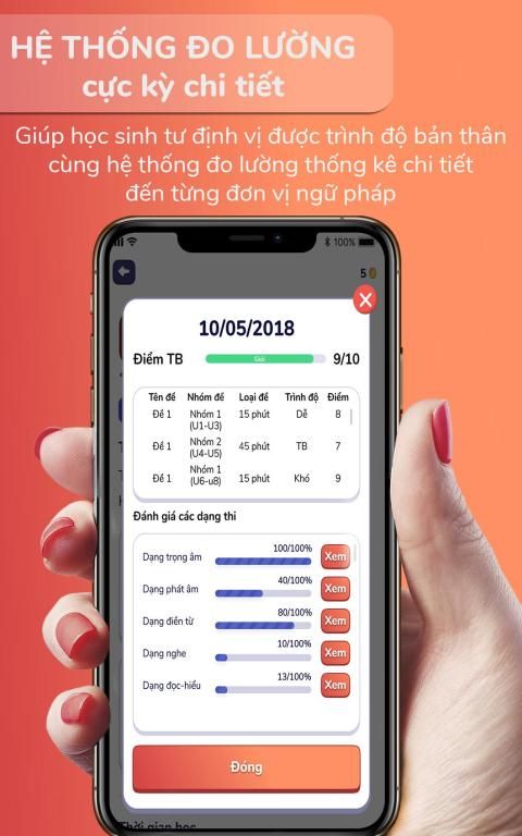 - सामग्री शिक्षा मंत्रालय की पाठ्यपुस्तक को बारीकी से अनुसरण करती है, जिसमें 2 महत्वपूर्ण कारकों पर ध्यान केंद्रित करने के लिए डिज़ाइन किया गया है, जो अंग्रेजी में 95% समस्याओं को हल करता है, शब्दावली और प्रमुख व्याकरण विषय हैं। छात्र आसानी से उस ज्ञान को जोड़ते और सुदृढ़ करते हैं जो उन्होंने पहले एक औपचारिक प्रक्रिया में सीखा है।
