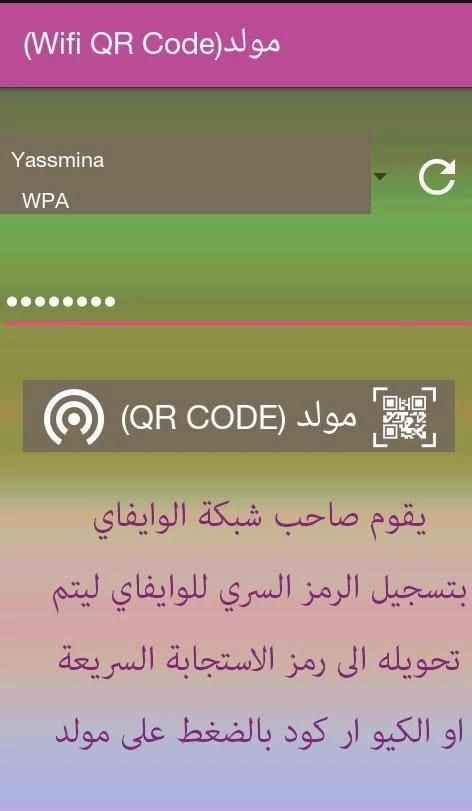कोड जनरेटर (QR) आप अपने बाड़े रैमसे एक कोडित छवि का उपयोग कर रहा है दूसरों के साथ आसानी से अपने Wi-Fi नेटवर्क शेयर Oivaa की अनुमति देता है। अपने मित्रों और परिवार और Zbnaak कर सकते हैं उन्हें इस एप्लिकेशन का उपयोग इन QR कोड का विश्लेषण और कुछ भी, Octabh पासवर्ड Bk.vqt स्कैन इमेज कोड लिखने के बिना नेटवर्क Allowaavaa शामिल होने, और सीधे Ballowaavaa है। इस एप्लिकेशन के पासवर्ड को छोड़कर Allowaavaa नेटवर्क के बारे में सभी जानकारी देता है।