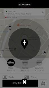 सेवाओं के लिए अनुरोध करने के लिए, उपयोगकर्ता उचित खाने में सवार की पिकअप स्थान और गंतव्य इंगित करने के लिए आवश्यक है। कृपया ध्यान दें कि उपयोगकर्ता / अनुरोधक कुछ निश्चित परिस्थितियों में सवार से अलग हो सकता। इसके बाद: