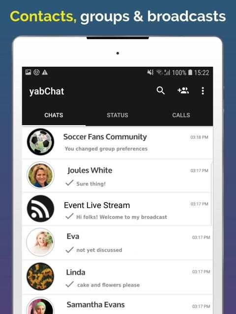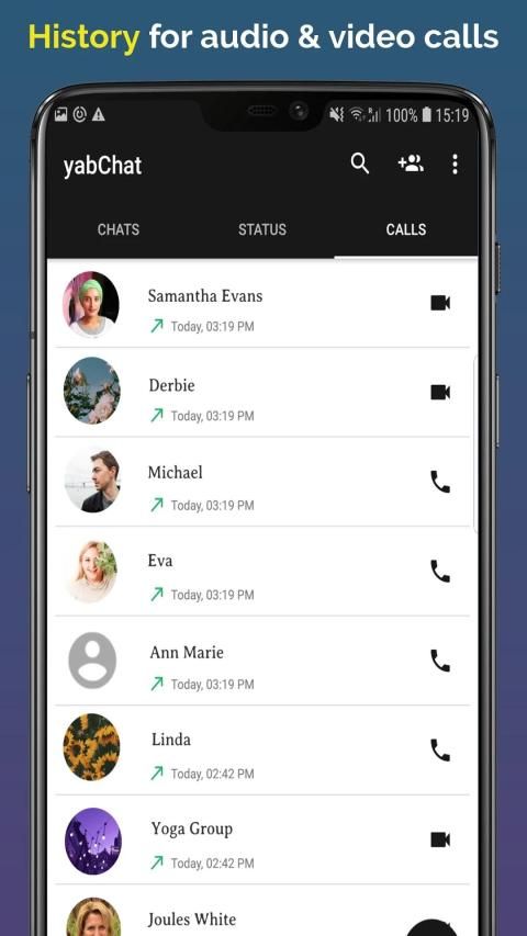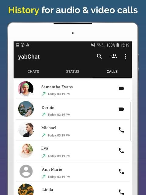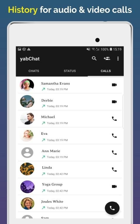 ■ yabChat Messenger is a FREE messaging app smartphones. yabChat allows you to communicate with family and friends using your phone's Internet connection (Wi-Fi/EDGE/2G/3G/4G or even 5G, as available).