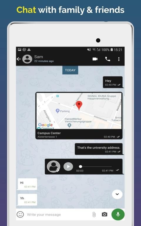 ■ yabChat मैसेंजर एक फ्री मैसेजिंग ऐप स्मार्टफोन है। yabChat आपको अपने फोन के इंटरनेट कनेक्शन (वाई-फाई / ईडीजीई / 2 जी / 3 जी / 4 जी या 5 जी, यहां तक कि उपलब्ध है) का उपयोग करके परिवार और दोस्तों के साथ संवाद करने की अनुमति देता है।