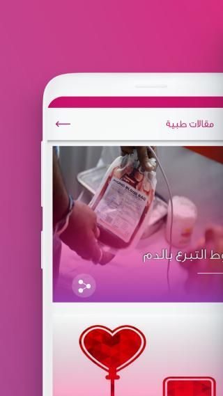 - ستتعرف من خلال تطبيق "وريد" على أهمية التبرع بالدم من خلال نافدة خاصة للتوعية بأهمية التبرع بالدم تحتوي على مقالات طبية ، ومن السهل مشاركة المقالات التي أعجبتك عن طريق الأيقونات الخاصة بمواقع التواصل الإجتماعي.