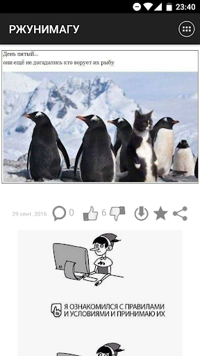 Понравившиеся записи можно комментировать и оценивать. Все понравившиеся картинки можно сохранять в галерее устройства в папке приложения. Ты можешь делиться записями с друзьями через социальные сети, а так же другие установленные на устройстве приложения. Ну и конечно, ты можешь оставлять лайки и сохранять записи в избранное.