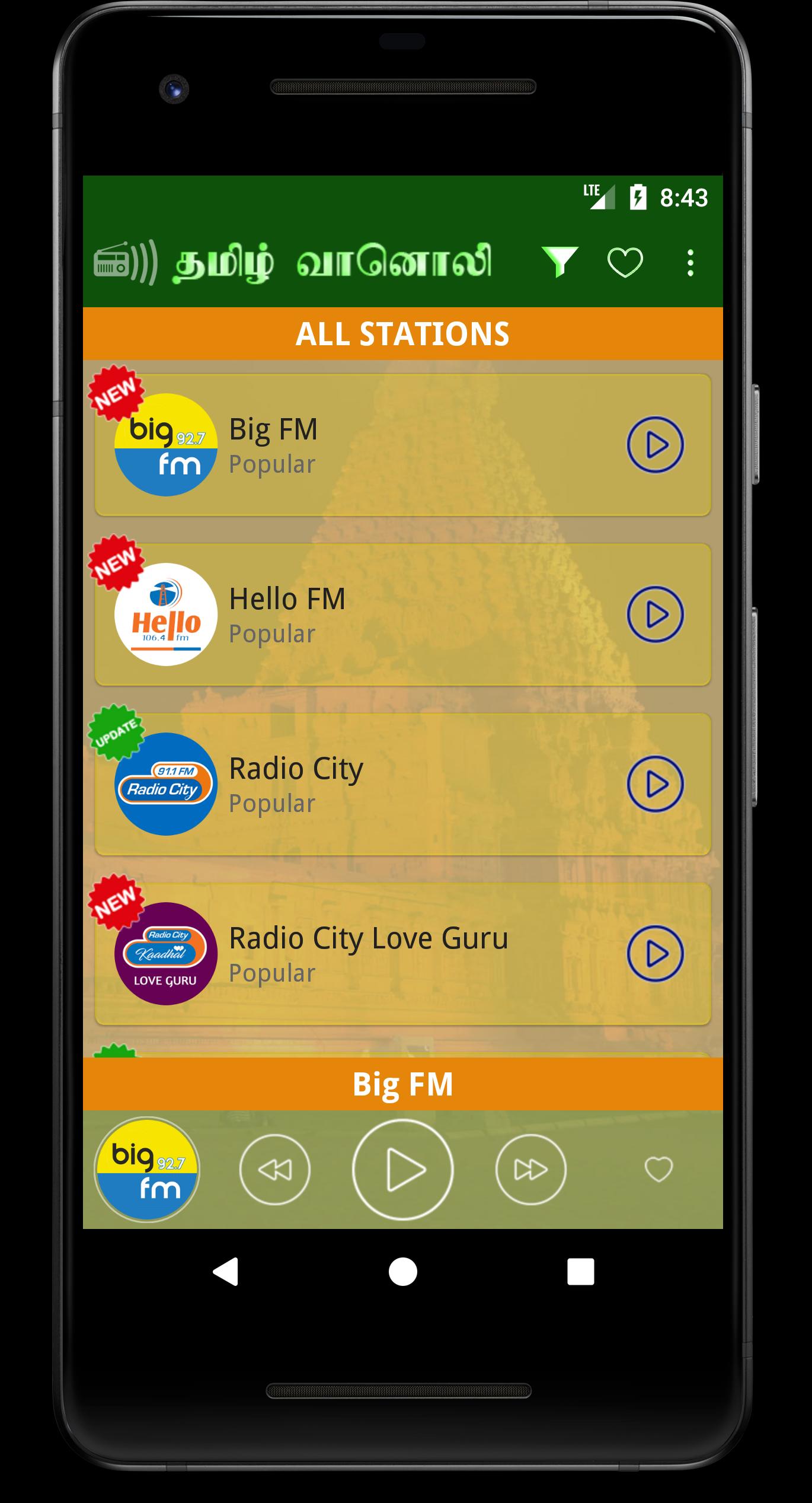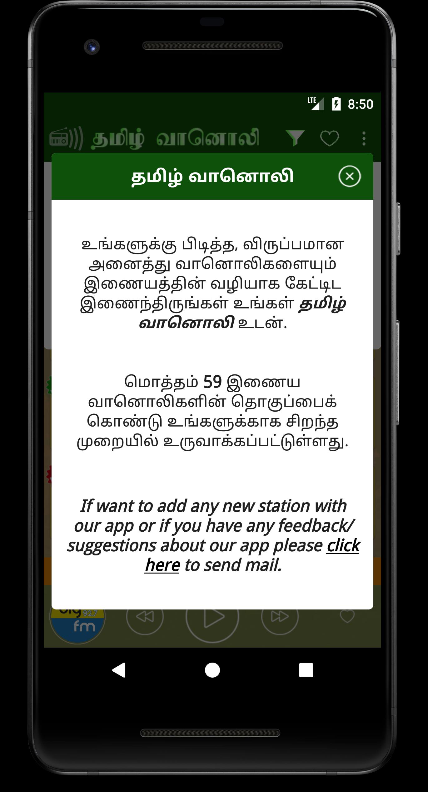 புது மற்றும் பழைய பாடல்களின் அலைவரிசைகளின் தொகுப்பையும், அனைவருக்கும் பிடித்த, விருப்பமான அலைவரிசைகளின் தொகுப்பையும் கொண்டு உங்களுக்காக மிகச் சிறந்த முறையில் உருவாக்கப்பட்டுள்ள ஒரு சிறந்த வானொலி.