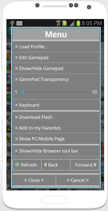4. While you are playing flash game you can switch gamepad style or hidden gamepad or even open soft keyboard.