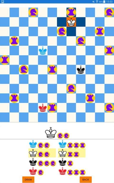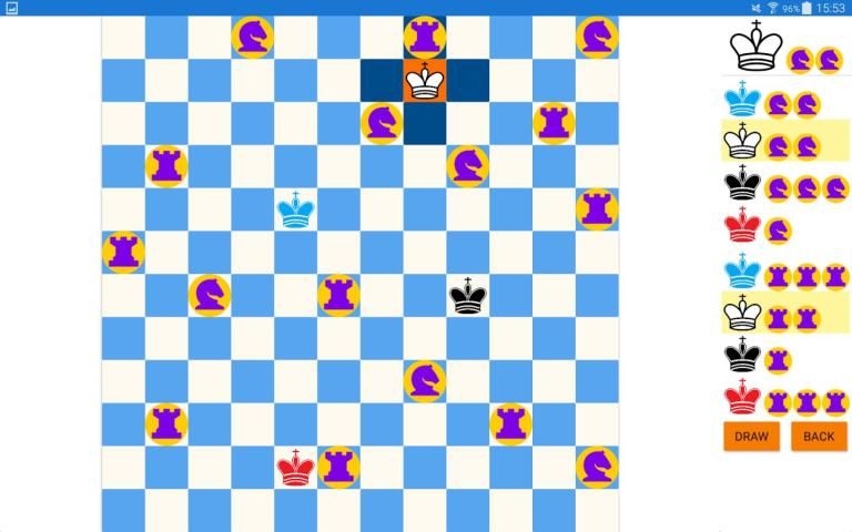 खिलाड़ियों को अलग-अलग रंगों में एक राजा के शतरंज के मोहरे के साथ प्रस्तुत कर रहे हैं।
