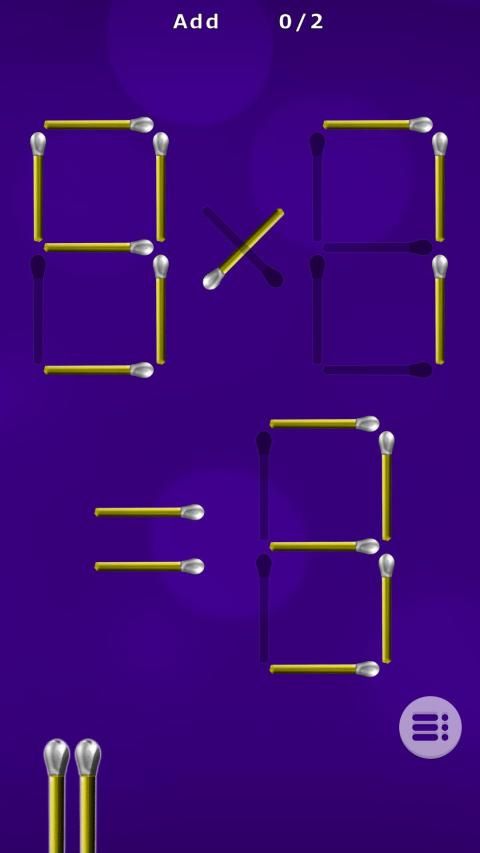 Solve matches puzzles by removing, adding and moving matches. Use all matches to find the right solution! Every matches puzzle level is different (shapes, sizes, modes ...). They are carefully made and manually checked, so they are correct.