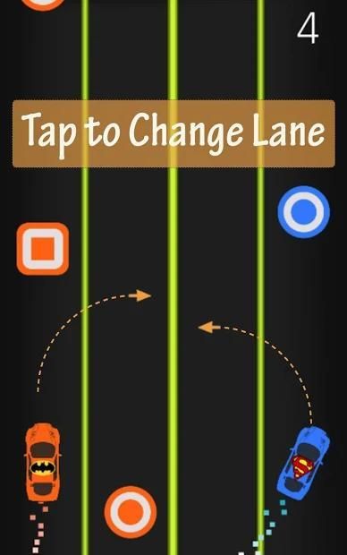 समय के खिलाफ दौड़ और मस्तिष्क युद्ध के मैदान दूरी प्रतियोगिता जाना। उंगलियों का उपयोग बल्लेबाजी आदमी + सुपर आदमी (BVS), लाल + नीला racecar नियंत्रित करने के लिए, बाधाओं से बचने, हलकों को पकड़ने।