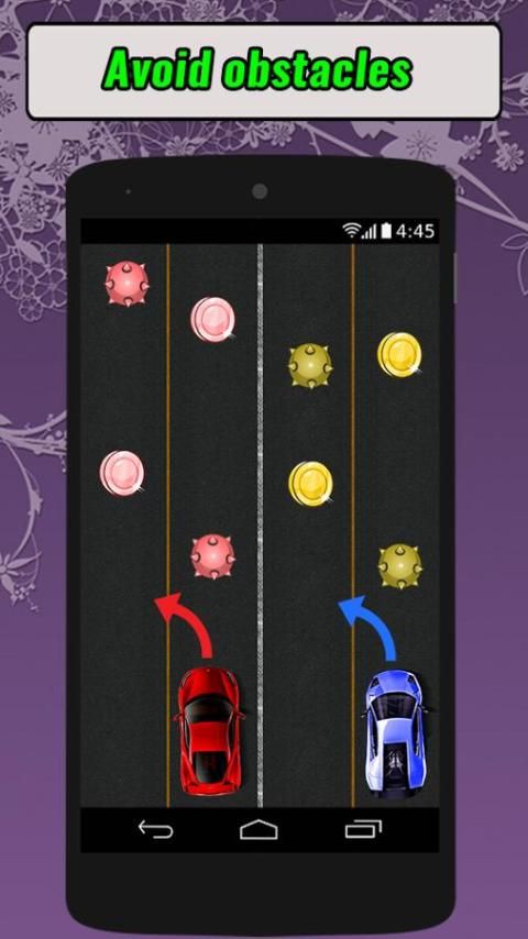सभी रेसिंग खेल के विपरीत, इस खेल में आप एक ही समय में दो कारों को नियंत्रित करने के लिए होगा, लाल और नीले रंग की कार कार है, जबकि सभी बाधाओं से बचने के लिए सभी सिक्के एकत्र। यह आसान लग रहा है, लेकिन यह बहुत मुश्किल है। यह आपके मस्तिष्क कौशल में सुधार होगा।