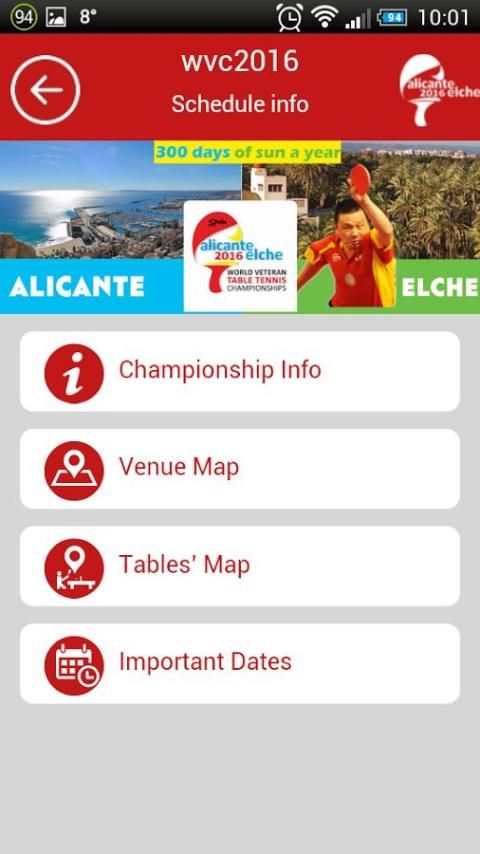 WVC2016 अनुप्रयोग 2,016 विश्व टेबल टेनिस चैम्पियनशिप के दिग्गजों, जो Alicante और Elche, स्पेन में 23-29th मई से जगह ले जाएगा के लिए आधिकारिक app है।