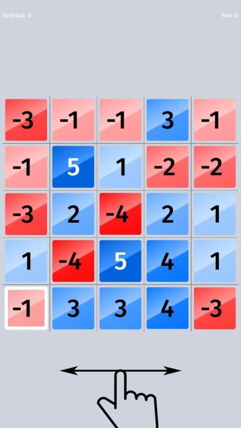 Проводя пальцем по экрану влево или вправо, вы можете перемещать курсор на нужную вам позицию, но только по горизонтали и в пределах одной строки. Однократное нажатие на сенсор по любой части экрана, означает подтверждение выбора числа, на котором находится указатель. Следите за счётом в верхней части экрана, и просчитывайте как можно больше ходов!