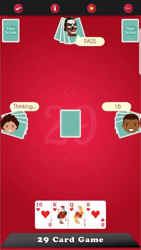 29 कार्ड गेम या जसे कार्ड जिसे कुछ में रखा जाता है, 4 खिलाड़ियों द्वारा निश्चित भागीदारी में खेला जाता है, दो समूह एक-दूसरे का सामना करते हैं। एक मानक 52 कार्ड पैक से दो कार्ड प्ले के लिए उपयोग किए जाते हैं। सामान्य 'फ्रेंच' सूट में से प्रत्येक में 8 कार्ड हैं: हुकुम, क्लब, हीरे और दिल। हर सूट रैंक में कार्ड निम्न से ऊँचाई तक: 7, 8, Q, K, 10, A, 9, J खेल का उद्देश्य मूल्यवान कार्ड युक्त ट्रिक्स जीतना है।