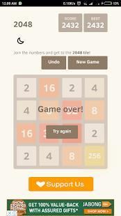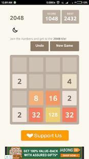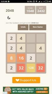 यह इसके अलावा के एक बहुत ही सरल तर्क पर विकसित एक भी स्तर खेल है। आप विचारों एक ही संख्या में जोड़ने के लिए स्वाइप करें और एक बड़ी संख्या बनाने के लिए कोशिश करते हैं और जब तक आप 2048 टाइल मार्क की नियति तक पहुँचने ऐसा करने के लिए जारी रखने की जरूरत है। लेकिन ध्यान रखें कि आप एक तरीके से टाइल्स को जोड़ने के लिए इतना है कि आप सबसे अधिक गैर चल बोर्ड पर बोर्ड के सभी अंतरिक्ष का उपभोग नहीं किया है में रहते हैं। तो खेलते हैं और खेल का आनंद और पूरा होने पर मैं विजेताओं को 100 रुपए Paytm नकदी की पेशकश कर रहा हूँ। एक स्क्रीनशॉट के साथ अपने समीक्षा संलग्न करें और अपना नंबर के साथ सत्यापन पर 100 रुपए Paytm नकद भुगतान किया जाएगा क्योंकि केवल 3 संभव तरीके लक्ष्य वहाँ तक पहुँचने के लिए है, इसलिए सभी में कोई धोखाधड़ी।