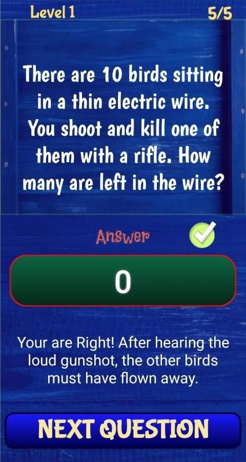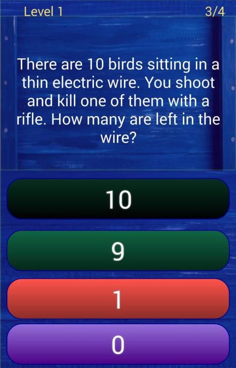 This game contains 300+ awesome brain riddles & teasers that test your intelligence and ability to think beyond ordinary. It contains multiple choice questions with tricky choices. Explanations are available to give you a hint on why the answers are such. It is sure that you will enjoy this app as you challenge the way you think. The trick here is to choose the simplest answers and avoid choices that are unlikely to happen. Some choices might satisfy some questions but the correct answers are those which best fit for the question.