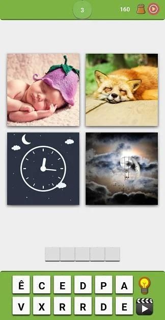 Étant donné 4 images et ces 4 images sont associées à un mot. Vous devez deviner ce mot. Quel est ce mot? Tous ceux qui aiment les jeux de logique, les énigmes et les quêtes jouent à ce jeu. Nous vous garantissons que vous ne vous ennuierez pas avec ce jeu. Jouer et s'amuser. Merci beaucoup d'avoir joué à ce jeu ...