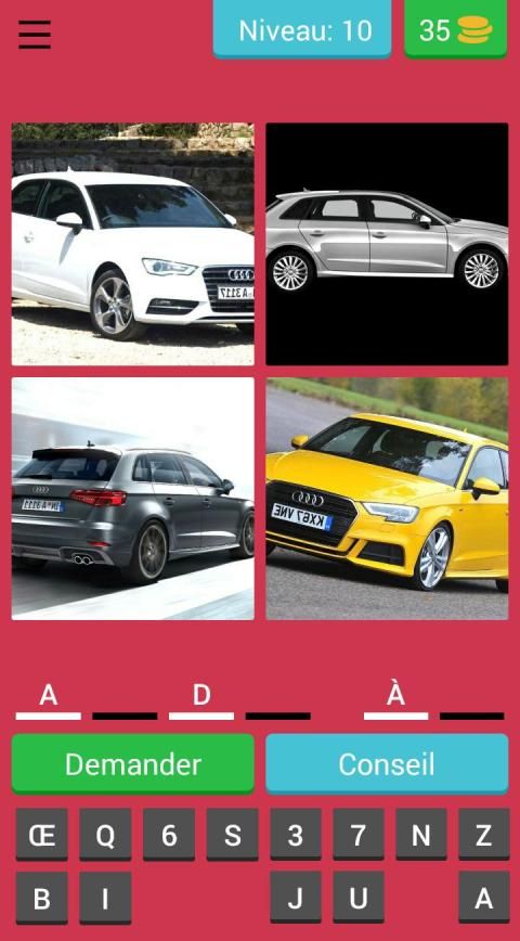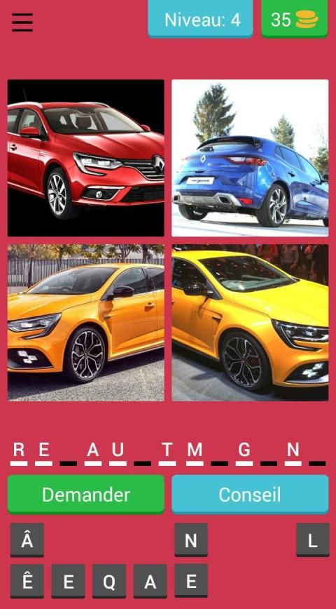 Dans ce jeu, vous allez pouvoir déterminer le nom de la voiture à travers 4 images, cela vous permettra d’apprendre facilement les modèles de voitures et d’améliorer votre culture automobile.