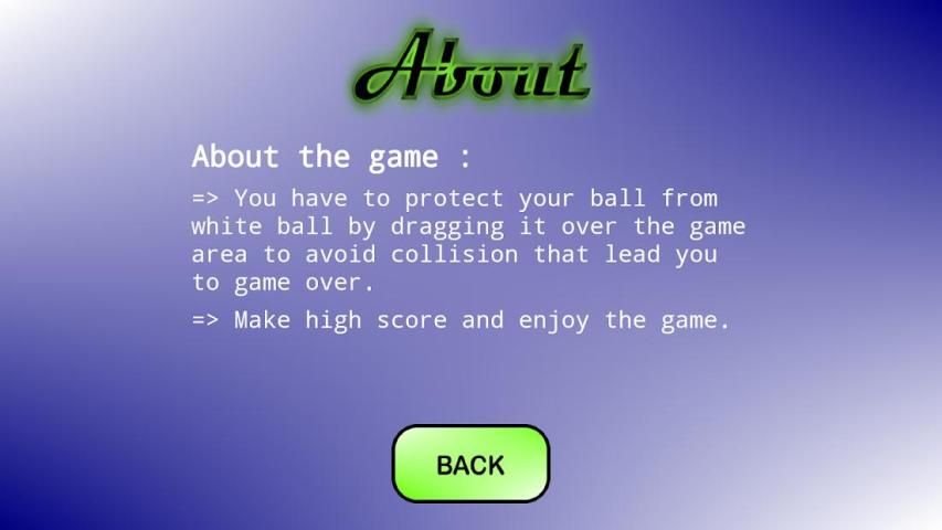 The main goal of this ball game is to make high score by surviving from other balls which is moving on the board.As time goes other balls speed will increase and you have to survive from them and have to make your best high score.You can feel adventure by playing this ball game.