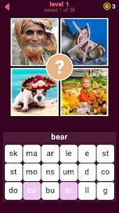 प्रति फोटो एक शब्द। प्रति स्तर 28 शब्द। खेल में 644 शब्द। क्या आप उन सभी को पा सकते हैं? कभी-कभी आपको स्पष्ट से परे सोचना पड़ता है। सौभाग्य!