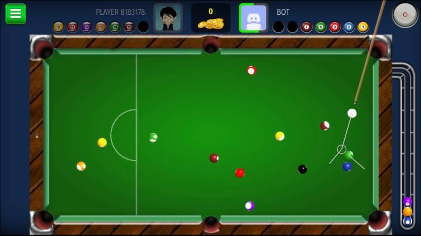 Touch control for moving the stick, adjust the direction and intensity, strike the ball, WIN! Face the challenge, level up, collect exclusive cues, increase your ranking.