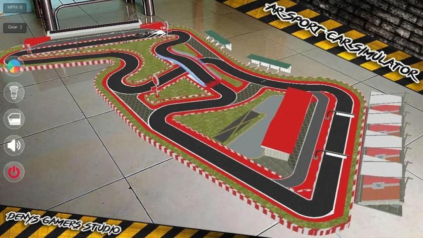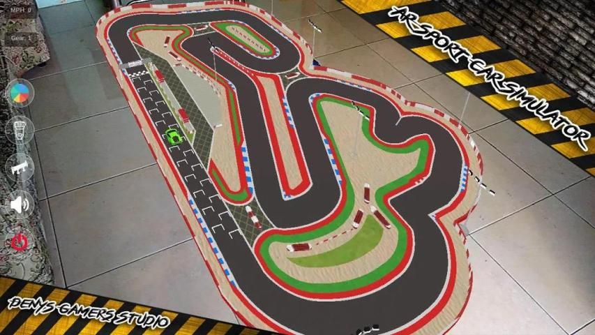 एआर स्पोर्ट कार सिम्युलेटर एक सिमुलेशन खेल एक स्पोर्ट्स कार ड्राइविंग संवर्धित वास्तविकता प्रौद्योगिकी का उपयोग कर रहा है।