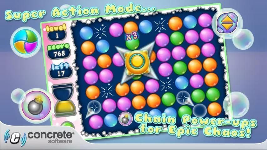 For a truly unique experience try Super Action mode with specials, like bubble swap and bubble gum, to clear bubbles even faster. Become an expert at all three of the mini-games in the Super Action mode to gain even more points and earn a place at the top for the online leaderboards!