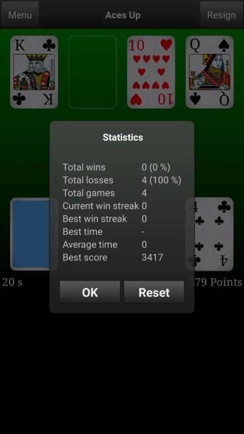 Aces Up (idiot's delight, once in a lifetime, aces remain) is a classical and fun solitary card game where you should eliminate as many cards as possible from the card table. In a perfectly played patience, you only have the aces remaining on the card table. Aces up is easy to play, but hard to complete.