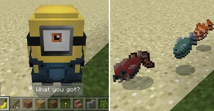 Minions पीले, छोटे, बेलनाकार जीव हैं जो Minions फिल्म में उनकी उपस्थिति के लिए सबसे ज्यादा जाना जाता है। यह एडन मिनियनक्राफ्ट पीई में एक लंबी नाक के साथ minions (बुराई शामिल) और मैन जोड़ता है। Minions बहुत प्यारे हैं और कई चीजों के लिए इस्तेमाल किया जा सकता है। उदाहरण के लिए, आप उन्हें तबाह कर सकते हैं, उन्हें आपके लिए लड़ सकते हैं या आप उन्हें शिकार या मछली पकड़ने के मिशन पर भेज सकते हैं।