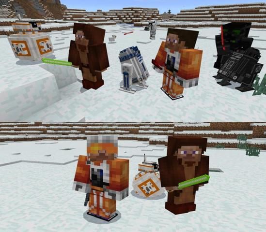 ऐड-ऑन एमपीसीई के लिए स्टार वार्स 2018 तीन ड्रौयड, एक जेडी बागे, lightsabers और Minecraft पॉकेट संस्करण के लिए अन्य मदों की एक जोड़ी कहते हैं (कस्टम के साथ लगता है)। ड्रौयड जो आप को वश में करने और अपने अगले रोमांच पर के रूप में वफादार साथी रखने के लिए सक्षम हो जाएगा के दो। लेकिन सावधान रहना। वहाँ वहाँ बाहर बुराई ड्रौयड जो आप और आपके ड्रायड दोस्तों को मारने के लिए प्रोग्राम किया गया है। इस ऐड-ऑन जो स्टार वार्स फिल्मों की तरह किसी के लिए भी बहुत जरूरी-प्ले है!