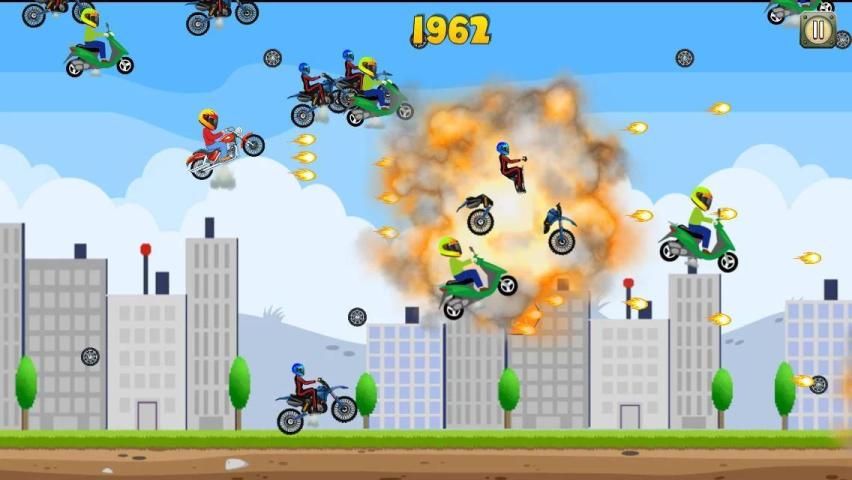 A bike equipped with modern jetpack technology, races and engages in a sky warfare with other flying motors. Enjoy explosive combats and shootouts. Fly as far as you can to get high score. Watch out for the boss Police Super Bike!