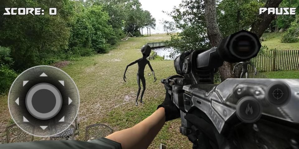 Load the game and use your scanner and viewfinder to find shape-shifting, interdimensional beings. Use your scope to lock on to one, and fire! take them out before they get to you!